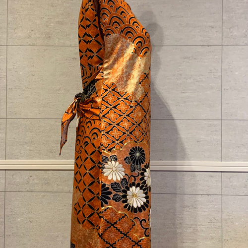 振袖 お着物 リメイク ワンピース ドレス ハンドメイド 腰紐リボン付き 新作*振袖で作った着物リメイクワンピースドレス*後ろリボン