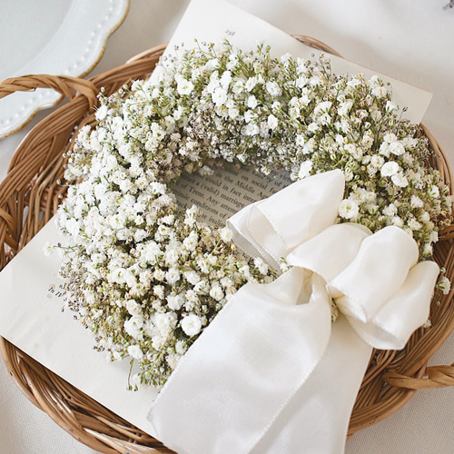 もこもこ✳︎たっぷりかすみ草のフラワーリース 花の雲】かすみ草たっぷりのナチュラルリース/もこもこ Creema